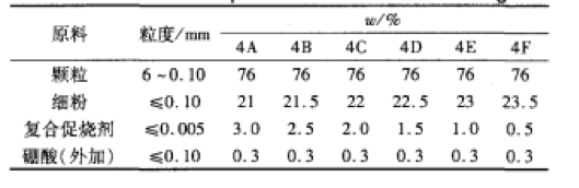 合理的顆粒級配可以提高搗打料的抗熱震性能及抗化學侵蝕性能,也能改善施工后中頻爐工作襯的燒結(jié)質(zhì)量。以文獻[5]為依據(jù),對顆粒級配進行微調(diào)整,研究顆粒級配對干式料性能的影響,具體配比見表2;然后,以優(yōu)選出4配方的粒度級配為基礎,改變復合高溫促燒劑的加入量(等量取代細粉質(zhì)量),研究促燒劑對于式搗打料性能的影響,其具體配比見表3。